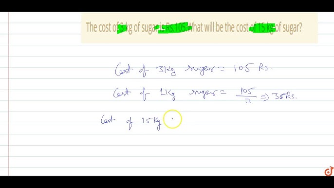 The Cost Of 3 Kg Of Sugar Is Rs 105 What Will Be The Cost Of 15 Kg Of Sugar Youtube